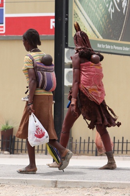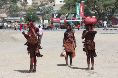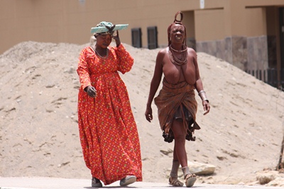 and another tribe, coming from Angola, where the women wear colorful fabrics and seem to enjoy wearing a bra !