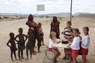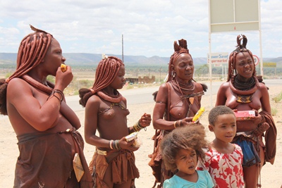 We have lunch outside the city, and are soon joined by a group of Himba who seem to have no qualms about sharing our meals.