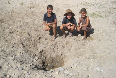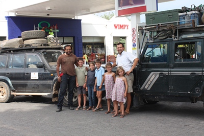 We fill our tank near a village, and as it is very hot, children start playing with the water.