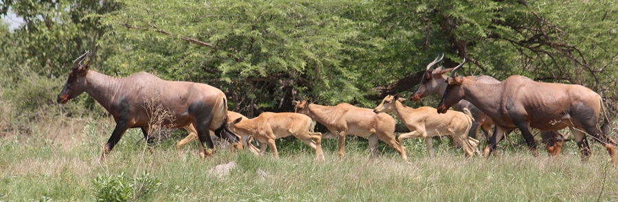 ostrich, wildebeest, zebra, warthog, red hartebeest.