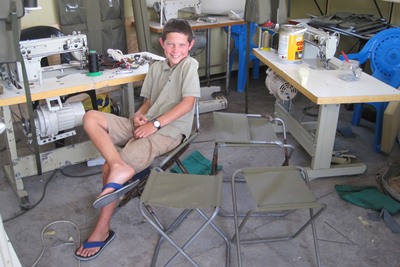 We find a workshop to redo the canvas of our chairs.