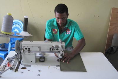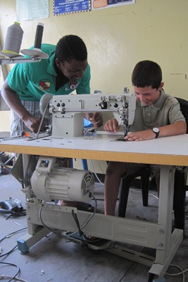 Tugdual takes his first sewing lesson.