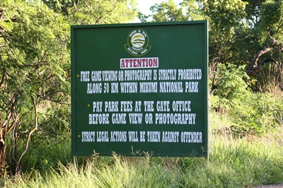 A large sign at the entrance states that people in transit are not allowed to watch or photograph wildlife !