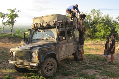 The antenna to which we head is located on a high mountain, and we take the opportunity to carry the keeper and his bike.