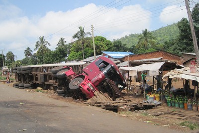 The damaged trucks try to reach home as they can, but of course we are the ones the police always arrest !