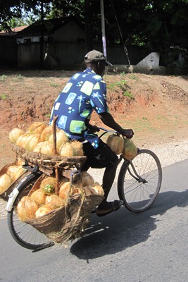 When crossing villages, cars must share the road with a bunch of pedestrians and bicycles.