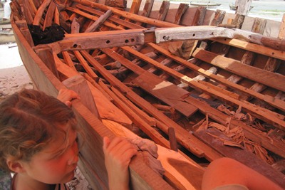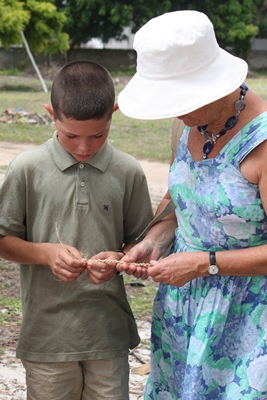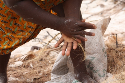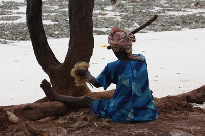 After two months in the sand, the fibers are extracted by beating the envelope partially decomposed.