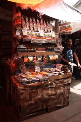 The market stalls are very colorful.
