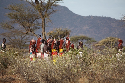 Passing nearby a village, we are witnessing a Samburu ceremony , where these young men jump like mounted on springs.
