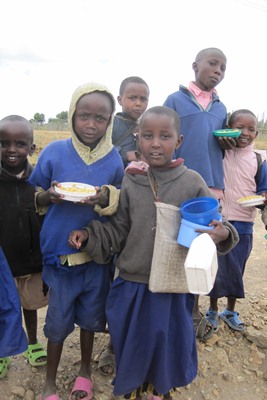 We are quickly surrounded by pupils from a nearby school who are having their lunch break.