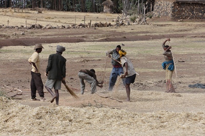 Plowing, harvesting, threshing, everything is still done by hand.