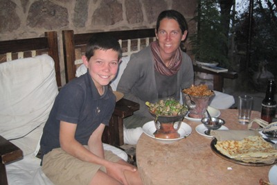 We settle in a small hotel near the entrance, and the children rapidely make new friends.