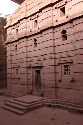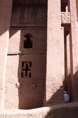 In the bottom of a 12m deep pit, rises this incredible church with a shape of a Greek cross, true iconic masterpiece of Lalibela.