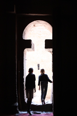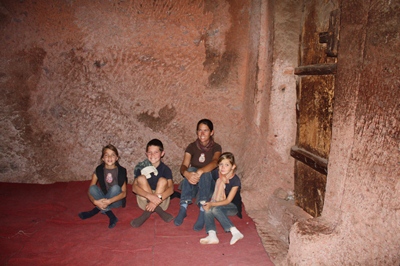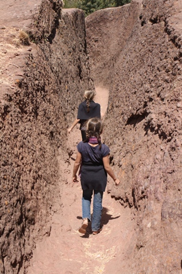 Churches communicate with each other through a network of passages hewn into the mountain. Kids love it.