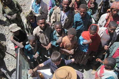 We stop on the roadside to have lunch, and we are quickly surrounded by a bunch of curious coming out of nowhere.