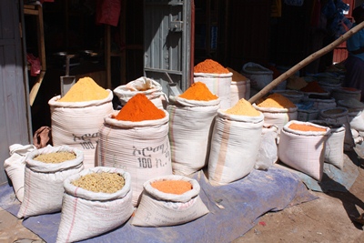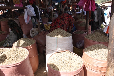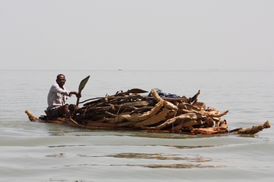 We see a few boats made of papyrus, the "tankwas", carrying wood towards the market of Bahir Dar.