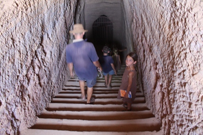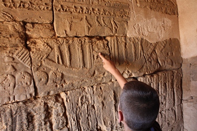 The hieroglyphs are somewhat damaged, but the kids are really interested.
