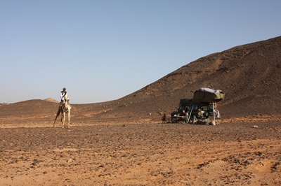 At nightfall, we camp near the site, and a Bedouin just pays us a visit.