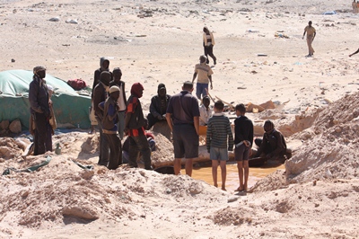 Hundreds of prospectors search the desert looking for gold.