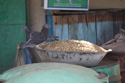 We reach Abri, a quiet town, where the pigeons have their habits at the grocery store !