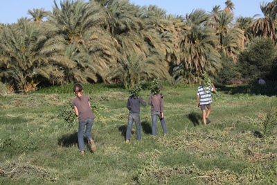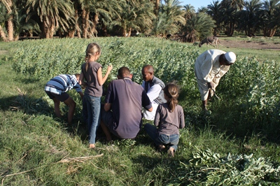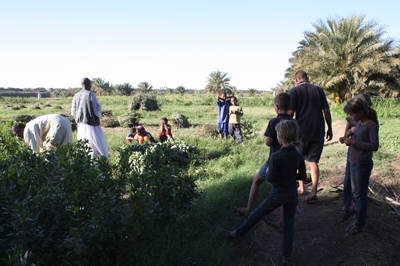 He takes us to visit the broad bean fields along the Nile.