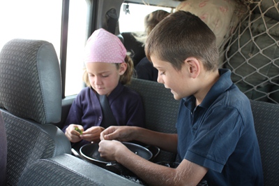 The road is a bit monotonous, but children are busy shelling the three kilos of peas purchased in town.