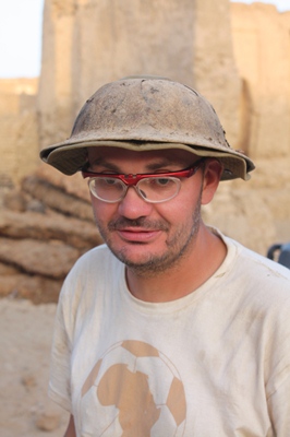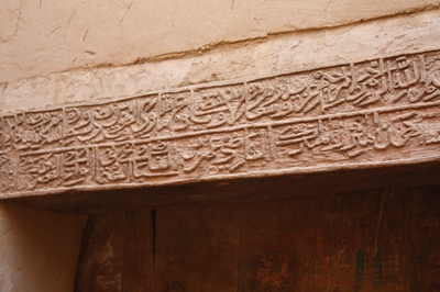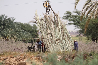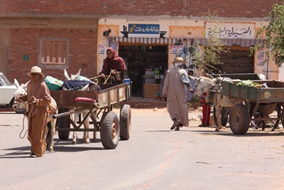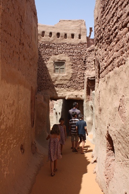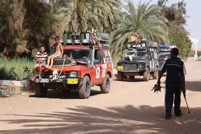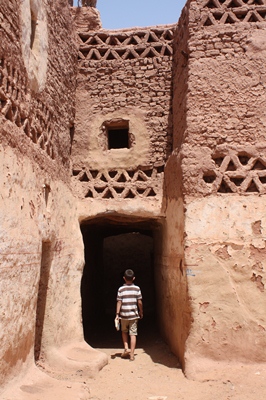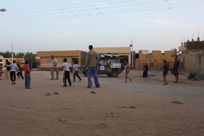 Before visiting the old town of El Qasr, we leash Demokrator.