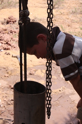 We stop on the roadside to watch workers digging a well.