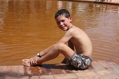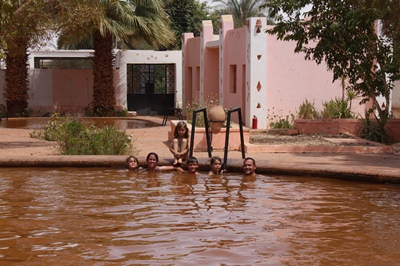 We bathe in the Bir Talaatathe hot spring . The water is full of iron, but it is good to feel clean !
