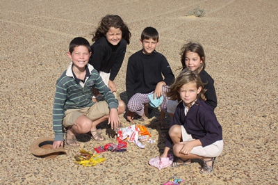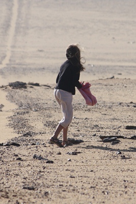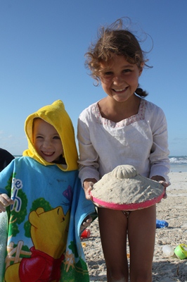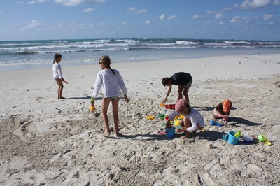 It's still too cold to swim, but the kids are excited to play in the sand.