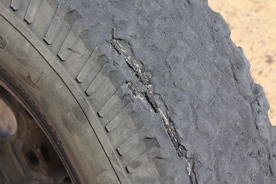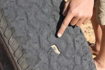 Folding camp, Tugdual realizes that one of the tires is as good as dead.